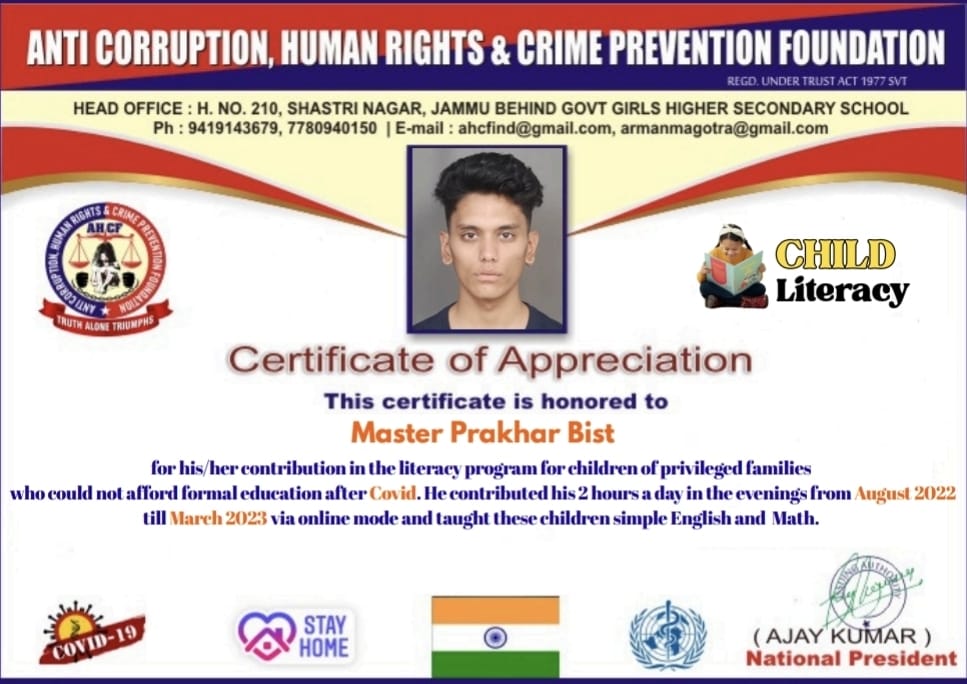 Child Litracy Certificates